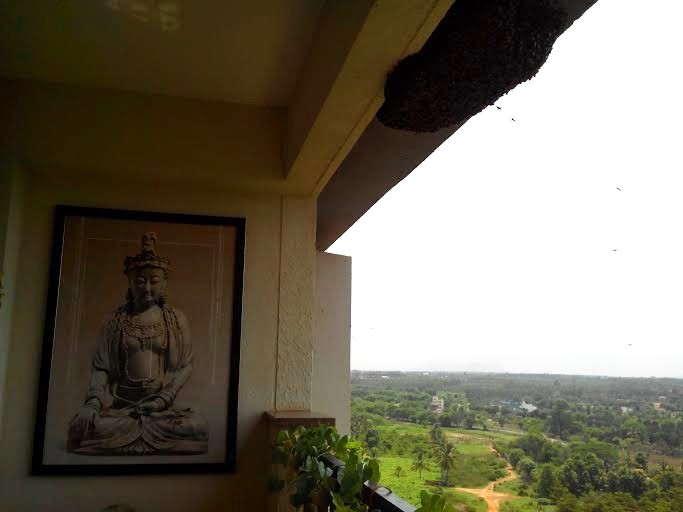 I found the smoking method quite effective as it helped bring down the hive (the remover’s livelihood) and did not kill all the bees. I guess thicker smoke would have driven away even more bees. It’s still the same method still being employed in rural India. No environmental activist has gone hammer and tongs against it so far. Unlike poisoned hives, this honey has high utility value (not all people can afford branded honey) and the wax is sold to packaging firms. There are no eco-friendly pest control agencies and no sprays that will only shoo the bees away. ‘Elimination’ is the only word these firms thrive on and they will say anything to keep themselves floating.